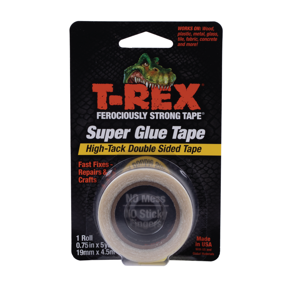 T-Rex® Double Sided Super Glue Tape features high-tack acrylic adhesive that sticks on contact for fast fixes. This double-sided super sticky tape is a great alternative to glue for mounting and automotive solutions, repairs requiring two surfaces to be adhered to each other or craft projects. Super glue tape provides aggressive adhesion on a variety of surfaces, including ceramic, concrete, glass, fabric, metal, plastic, tile, wood and more. Plus, it won't stick to skin like traditional super glue and can be torn by hand for easy use.